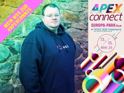 | | "Mein Weg zur APEX connect 2025" | Ronny Weiß | | Viele Wege führen nach... Rust! Hier, im Europa-Park, finden im Mai 2025 die Konferenzen #apexconn25 und #DOAGDB25 parallel statt. Wie kommt Ronny Weiß, Mitglied des Oracle APEX Development Team, zur APEX connect 2025 und auf welche Sessions freut er sich besonders?
